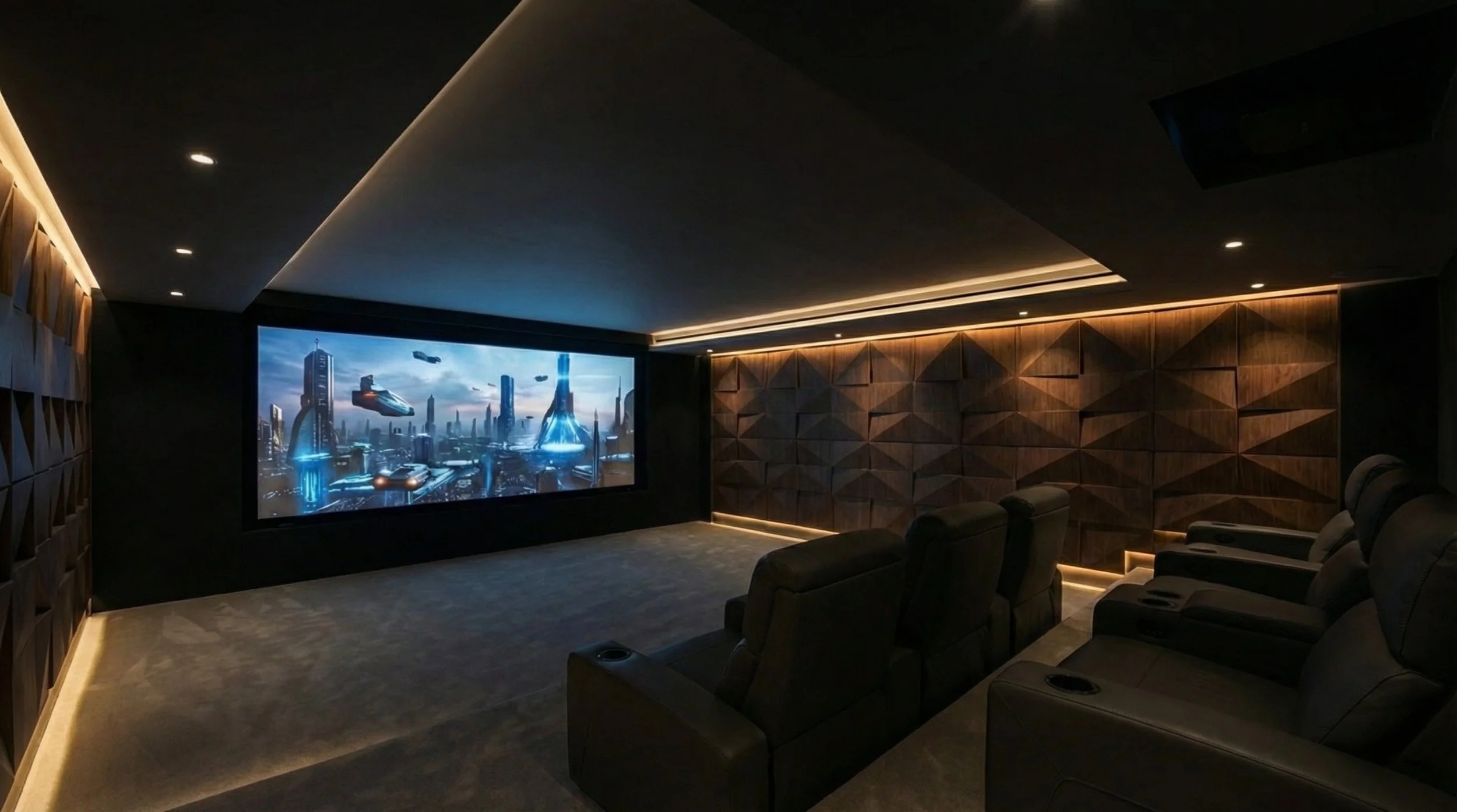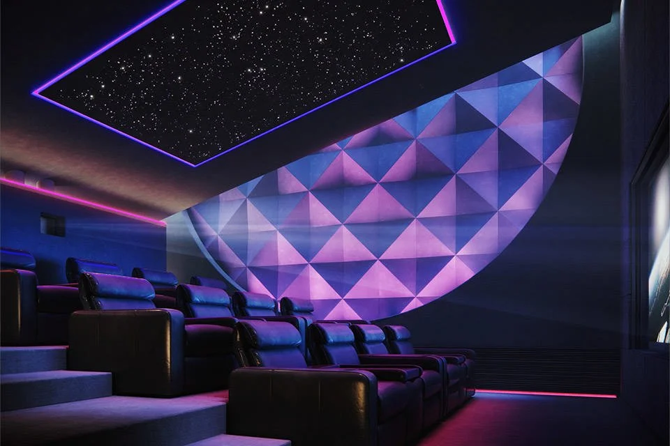Our "Engineering First" approach prioritises architectural harmony. We partner with Artnovion to use acoustic treatments that double as design features—turning absorbers and diffusers into geometric wall art or hiding them behind bespoke fabric finishes. By integrating Sony projectors into motorised lifts and using acoustically transparent screens to conceal Krix speakers, we ensure your cinema performs flawlessly without visible "tech-clutter".